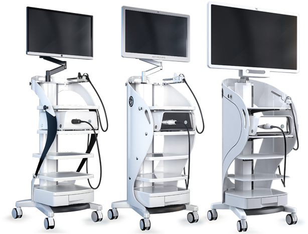 The fully integrated Ultra HD visualization systems for laparoscopic and arthroscopic procedures are equipped with monobloc cameras, single-use covers & broadcast solutions. The towers meet the requirements from the different surgical approaches and philosophies by offering a large catalogue of equipments and accessories.